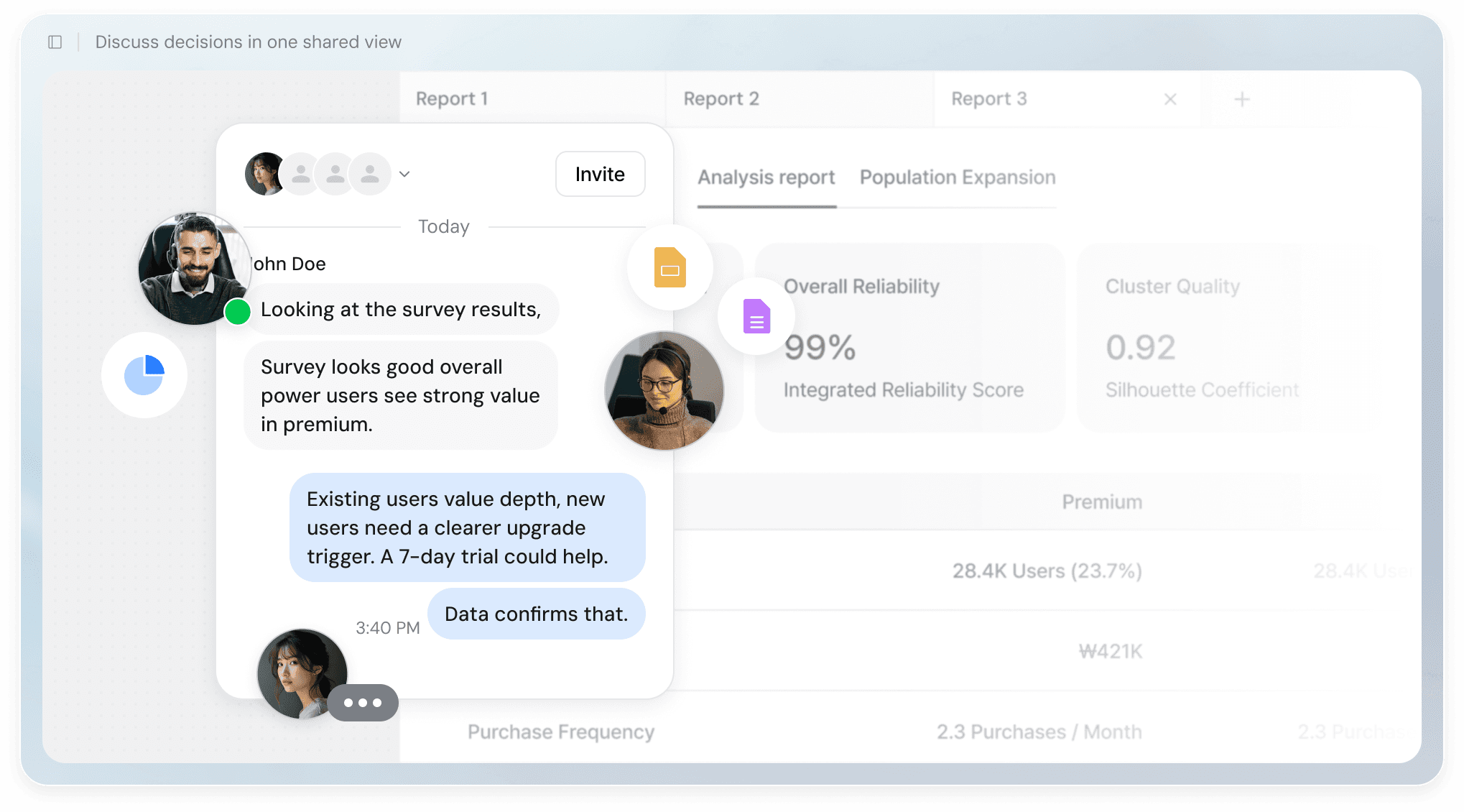 Chat, comment, and debate insights with your team — directly on the same data and reports.